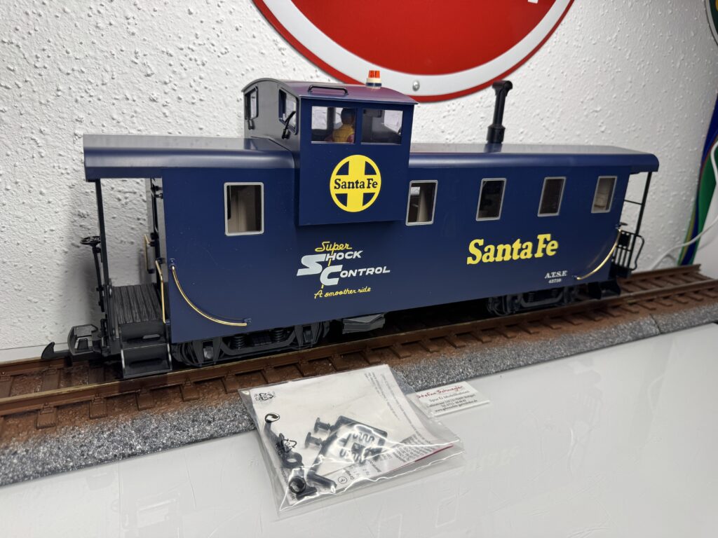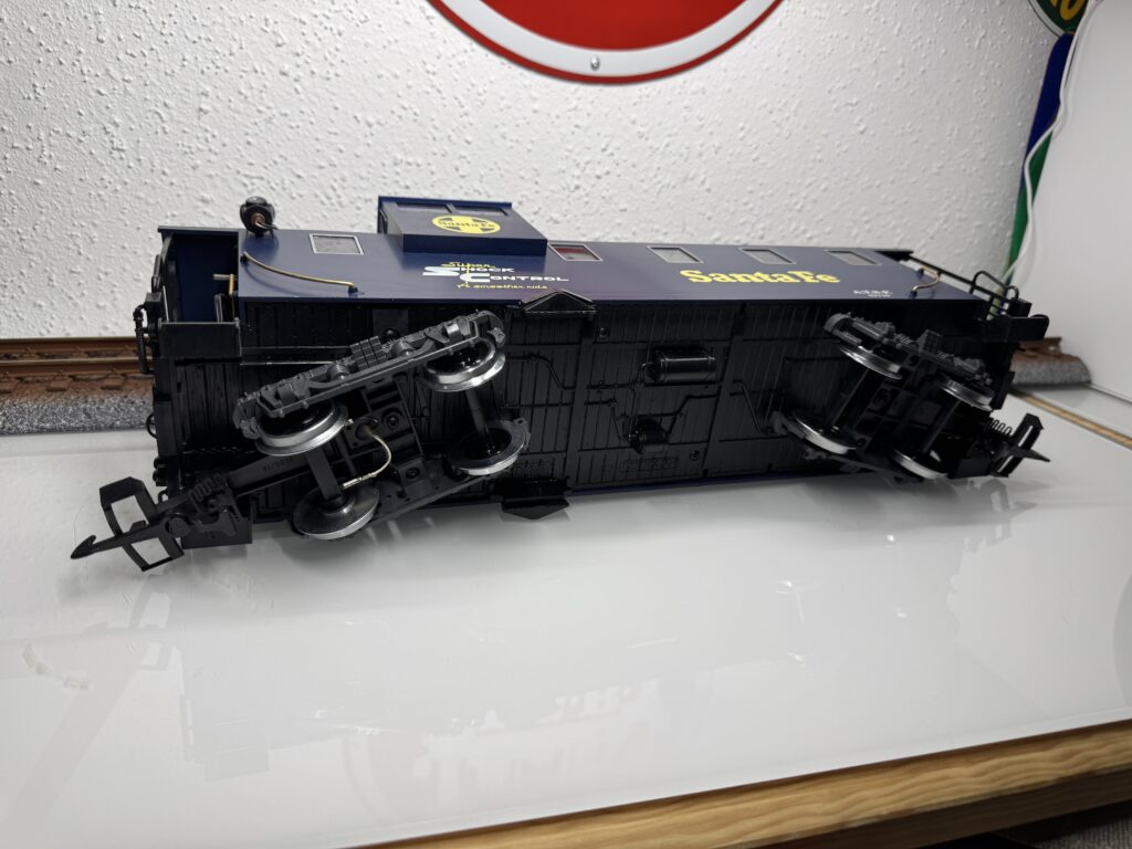 43710-GB | Caboose der Santa Fe,dunkelblau Nachgerüstet mit Beleuchtung über 1xKugellagerachse | 2-3 | 4,Kugellager/Metall | Ja | 119,00€ | LGB |