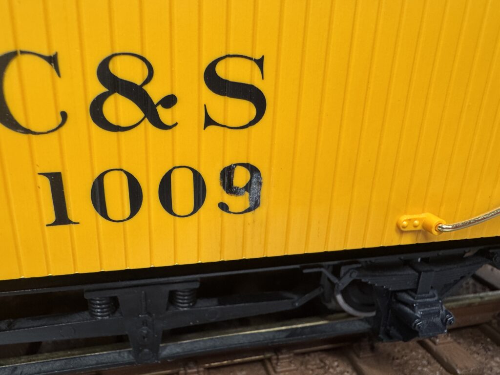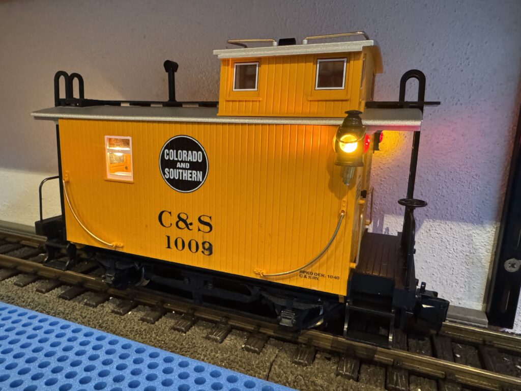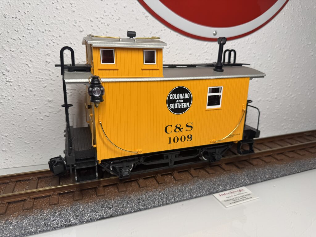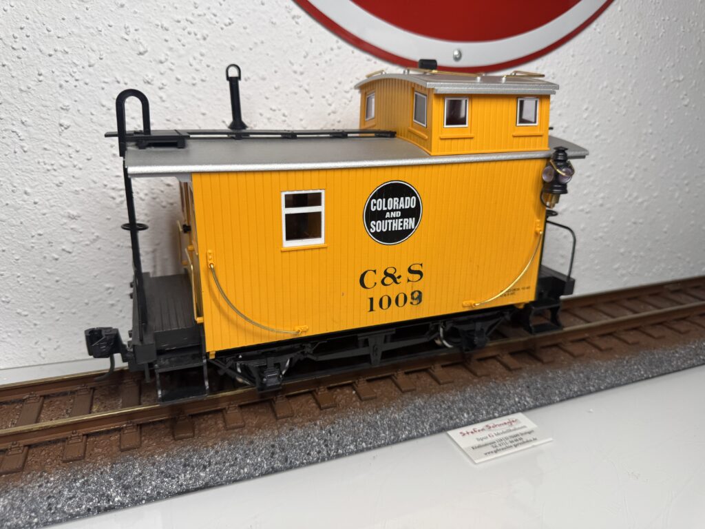 43650 | Caboose der Colorad&Southern,gelb Nachgerüstet mit Innen und Schlußbeleuchtung über Kugellagerachsen. nummer wurde in 1009 geändert! Kupplungen können auf wunsch geändert werden! | 3 | 2,Kugellager | Ja | 109,00€ | LGB |