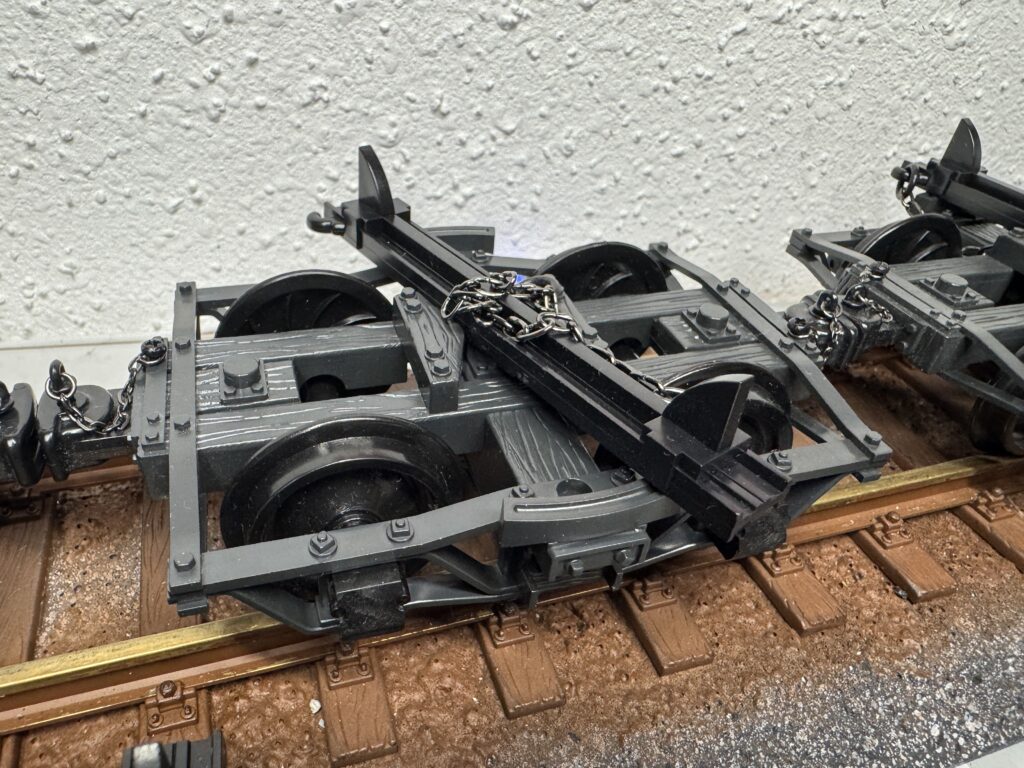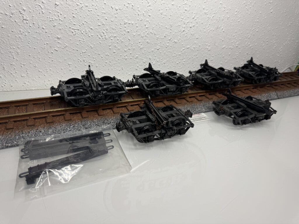 40770 | Set mit 6 Waldbahntrucks,Incl.3xKuppelstange und 3xKuppeleisen Bei 2 Wagen sind die Ketten rostig. Sonst neuwertig! | 2-3 | 6x2 | Ja | 149,00€ Reserviert | LGB |