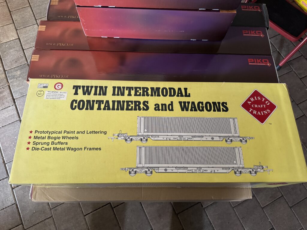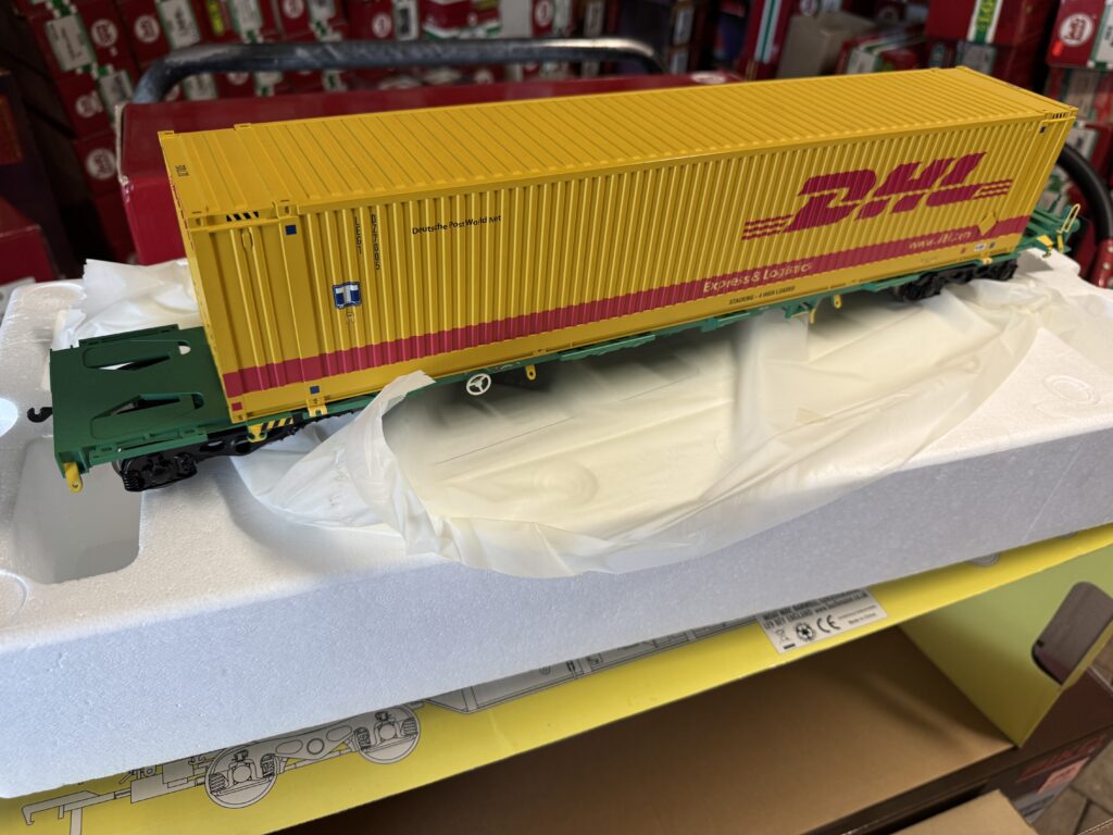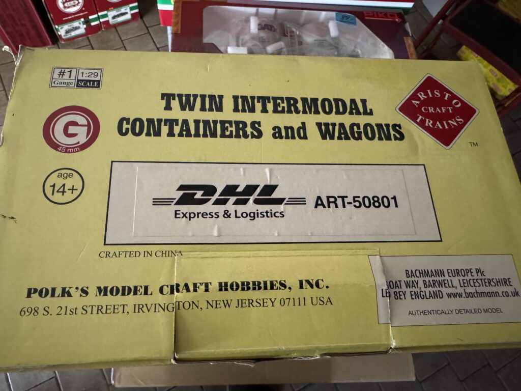 50801 | Intermodal Containercar. Set mit 2 Wagen mit DHL Containern Neuzustand!! | 1 | 2x4,Metall | Ja | 349,00€ Reserviert | Aristo-Craft |