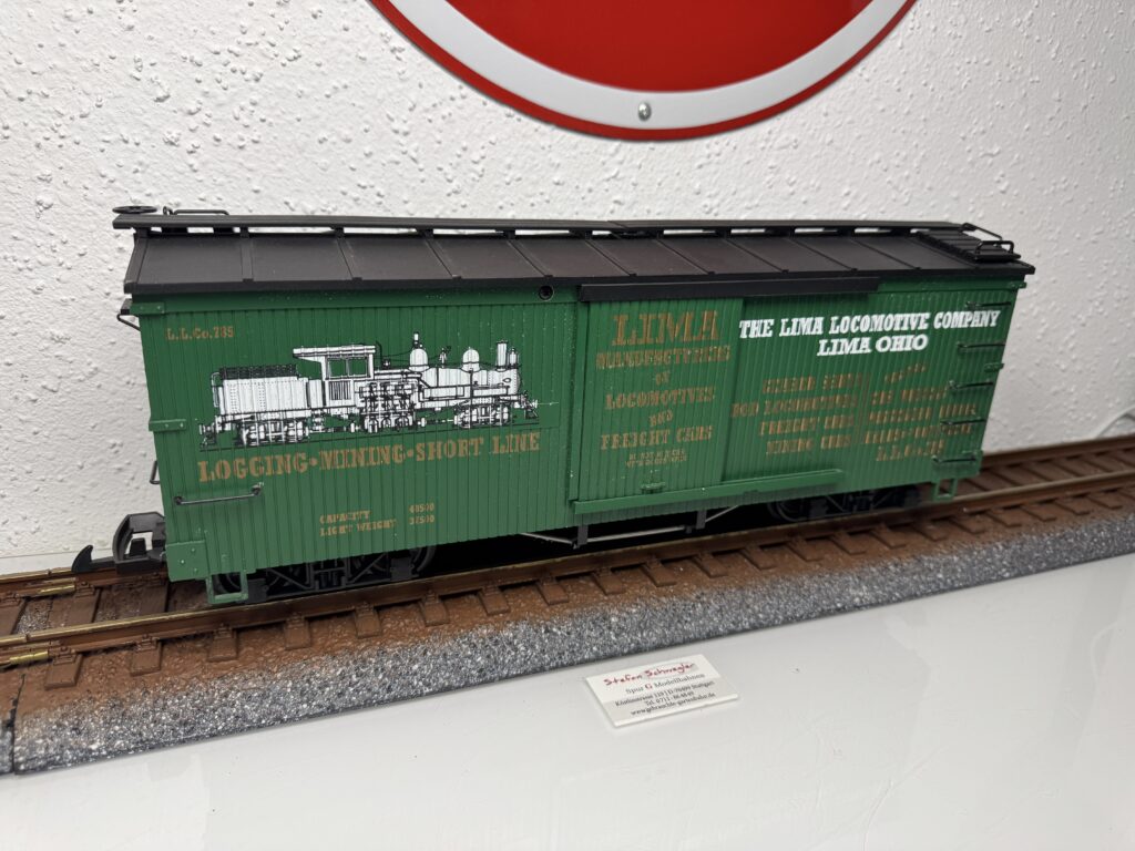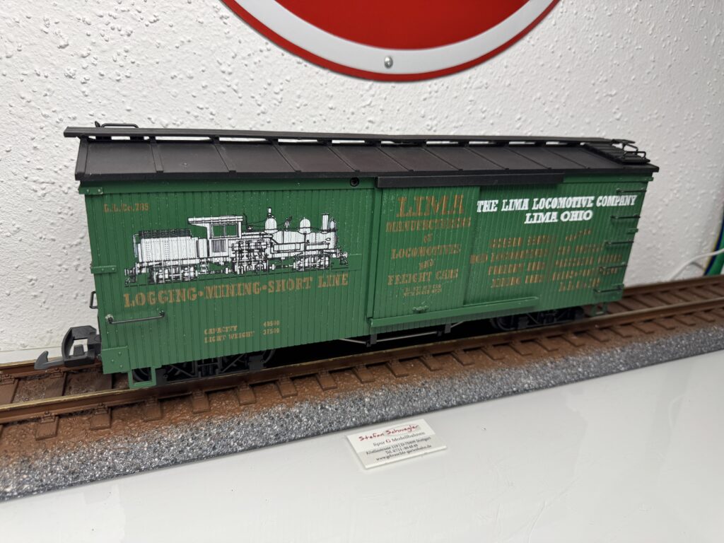 19038G | Boxcar "Lima Locomotive Works" mit Shay Lokomotive | 3 | 4 | Nein | 99,00€ Reserviert | USA-Trains |