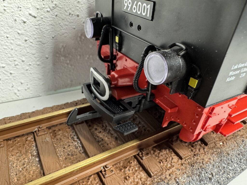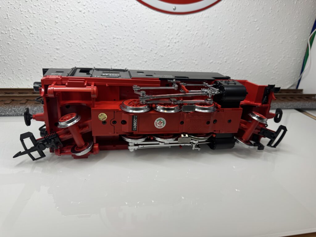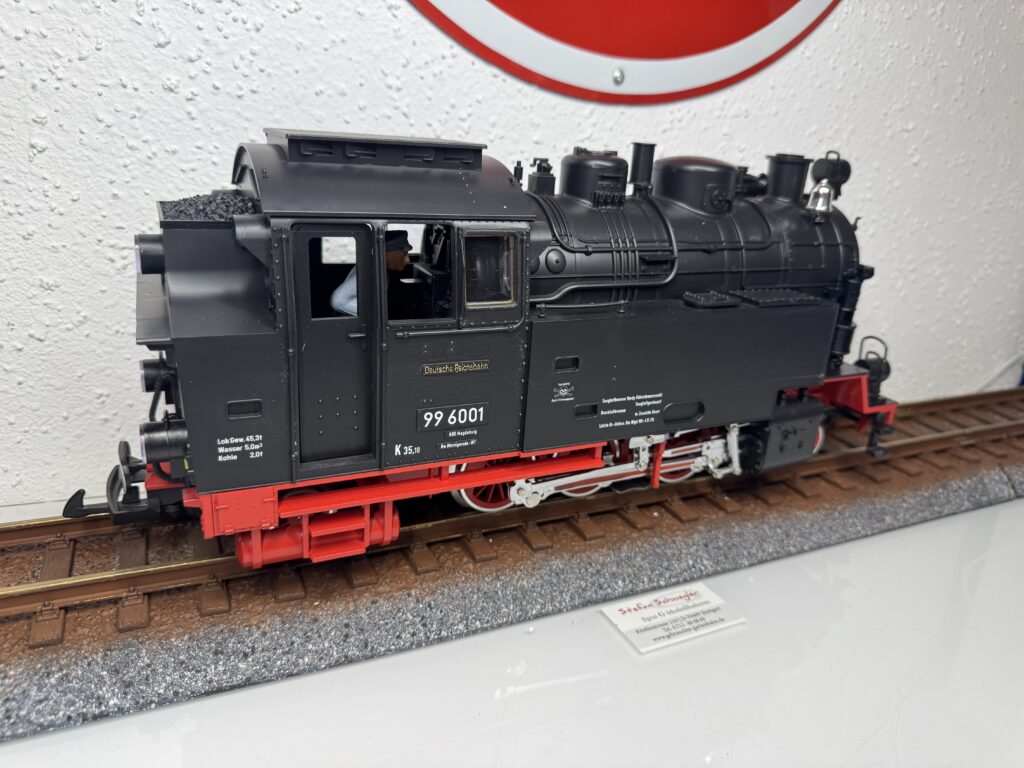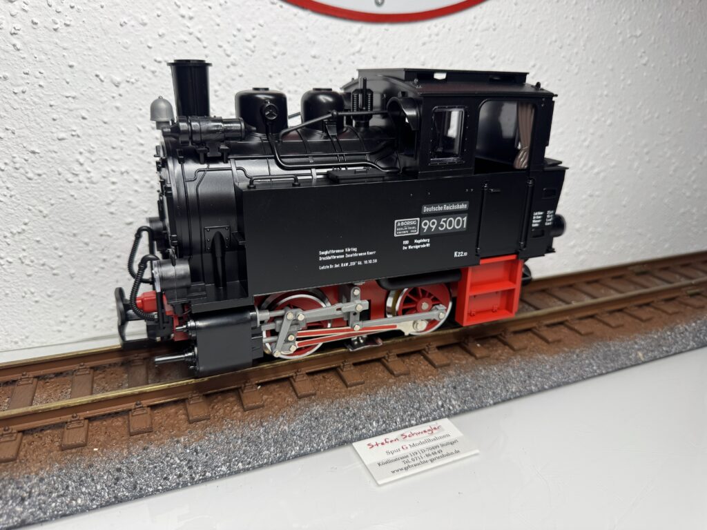 22801/ESU | Dampflok 996001 der DR,schwarz. Nachgerüstet mit ESU Dekoder(vermutlich 3.5) und gepulstem Verdampfer. Zusätzlich aktuelle Massoth Rangierkupplung hinten! | 3-4 | Ja | Ja | Ja | 449,00€ | LGB |