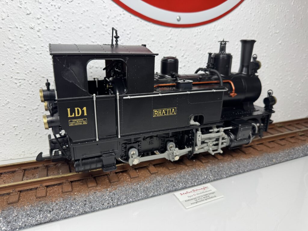 20273 | Dampflok "Rhätia" der L.D. Nr.1 Seltenes Sondermodell in Holzkiste Durch einen Sturz hat das Modell Schäden an Rahmen und Führerhaus. Lok funktioniert Einwandfrei und ist nur sehr wenig gelaufen | Ja | Ja | Ja | 729,00€ | LGB | |
