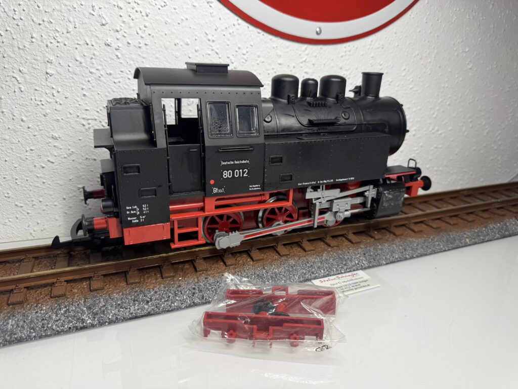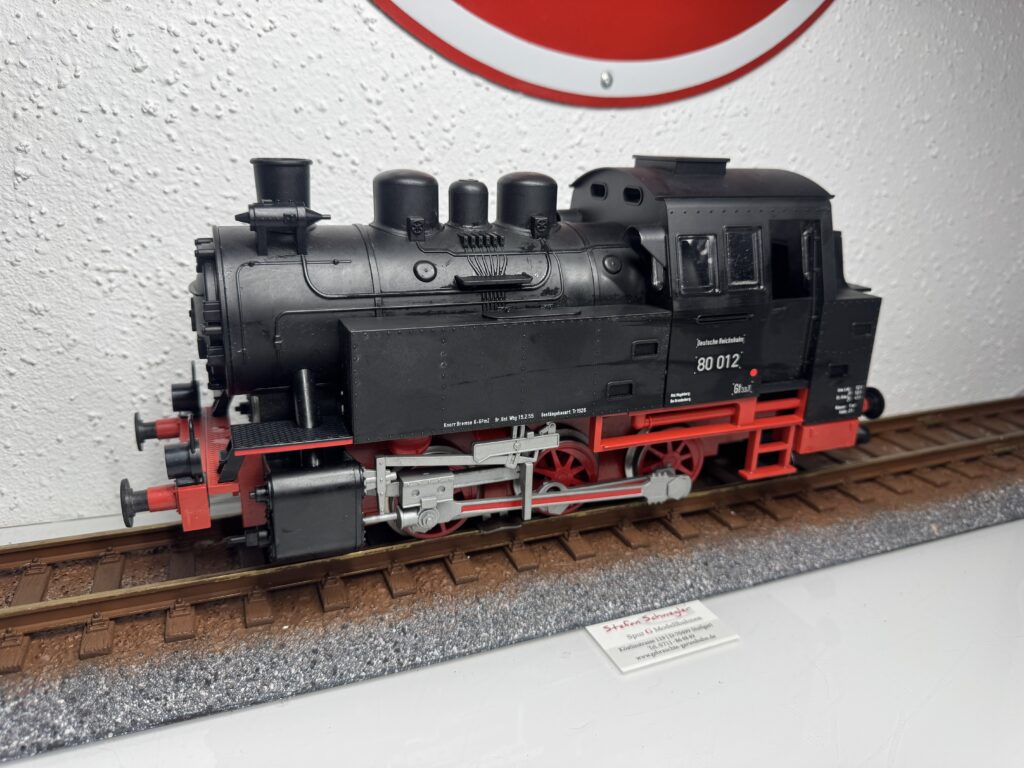 37125 | Dampflok der DB BR 80 012 Lok mit Sound ab Werk. Nachgerüstet mit Dekoder und Massoth-Entkuppler hinten | 2-3 | Ja | Ja | Nein | 195,00€ Reserviert | PIKO |
