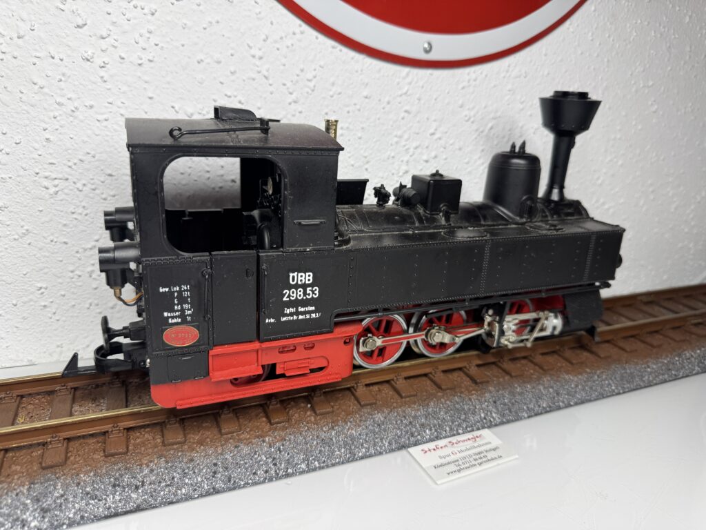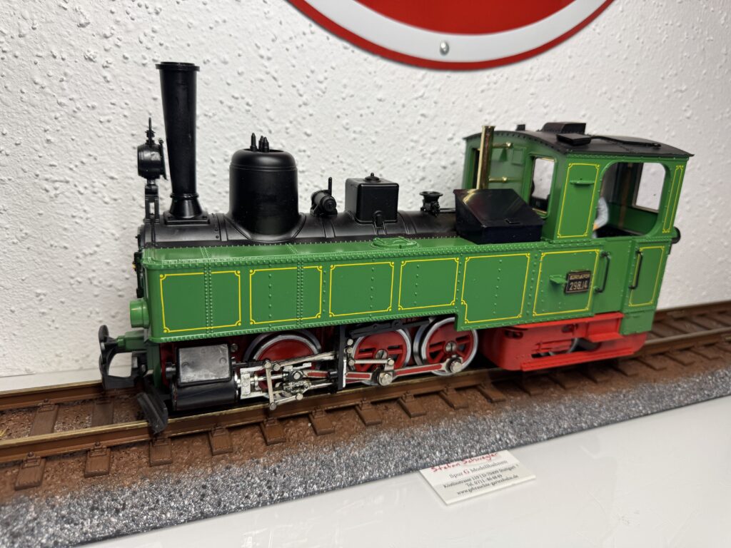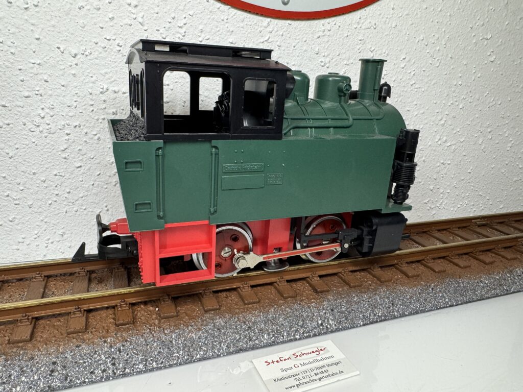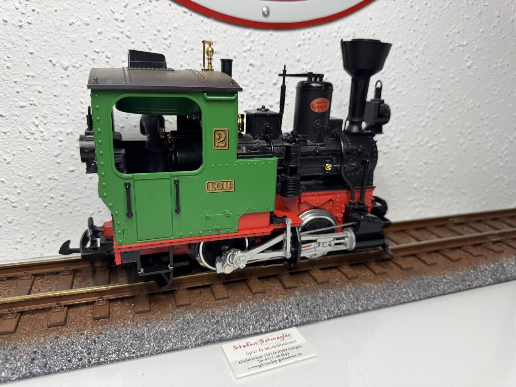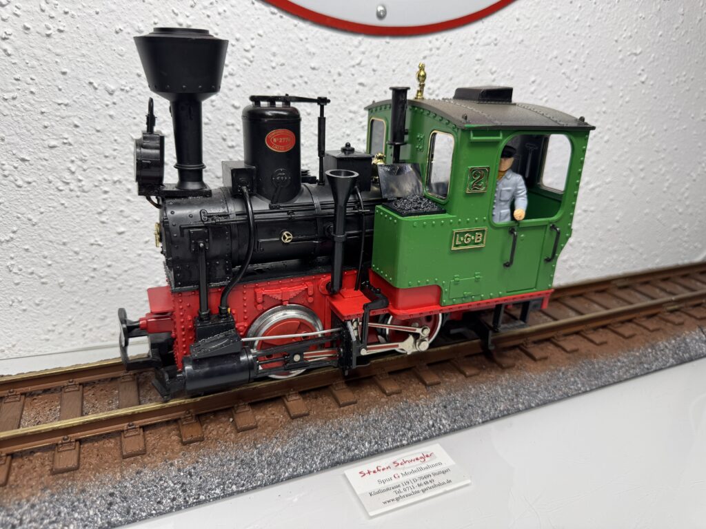 22832 | Dampflok 99633 der DB "Öchsle Dampflok" LGB-Aster Metallmodell der Eisenbahn-Romantik Lok. Modell mit Holzkiste (ohne Styropor)und Bedienungsanleitung OHNE Zertifikat und ohne Seriennummer. | 2 | Ja | Ja | Ja | 2799,00€ Grüne Ausführung LGB 25832 ist ebenfalls lieferbar. Abholung stark bevorzugt! | LGB-Aster | |