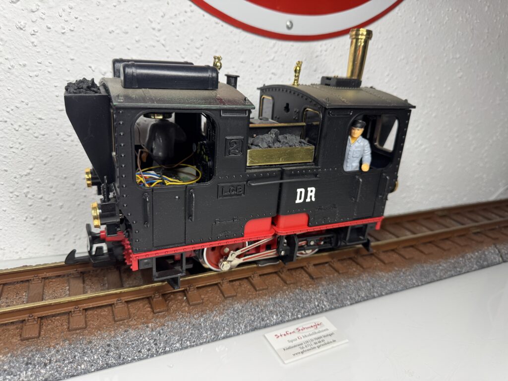 2080S | Dampflok 996001 der DR,schwarz. Ab Werk mit analogem Dampfloksound. Pfeife+glocke über Kontaktleisten(liegen 2xbei) Mit 5Volt Technik und Betriebssartenschalter! | 2 | Nein | Ja | Ja | 399,00€ | LGB | |