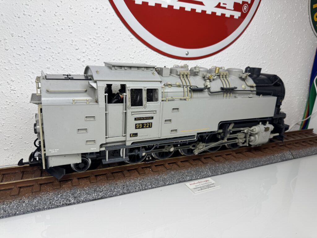 26816 | Dampflok 99221 der Deutschen Reichsbahn Sondermodell in grauer Ausführung mit Mfx-Sounddekoder und gepulstem Verdampfer Einige Leitungen sind durch Freilandeinsatz leicht vergilbt | 3 | Ja | Ja | Ja | 1695,00€ | LGB | |