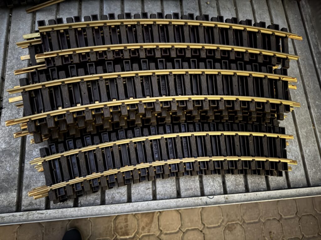 Lieferbare Stückzahlen bitte anfragen.Gebrauchtes Gleismaterial ,besonders große Radien sind meist schnell vergriffen!