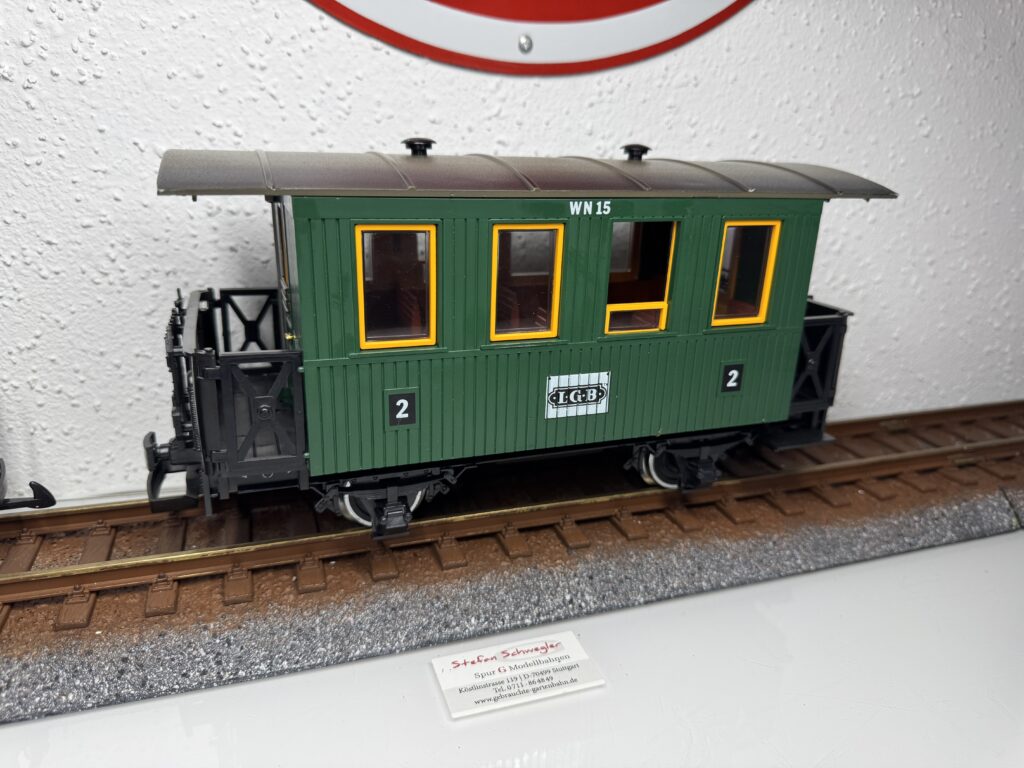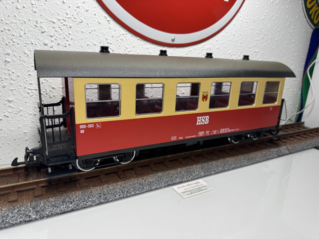 33730 | Personenwagen der HSB mit Wappen Gernrode Nachgerüstet mit Metallachsen und 1xKugellagerachse und Innenbeleuchtung | 1-2 | 4,Metall | Ja | 179,00€ | LGB | |