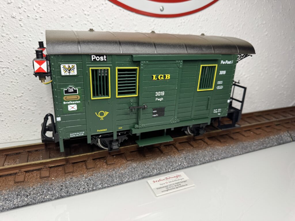 3019-TB | Gepäckpostwagen mit Innen und Schlußbeleuchtung. 1xTrittbrett gebrochen | 3 | 2,Metall | Nein | 59,00€ | LGB | |