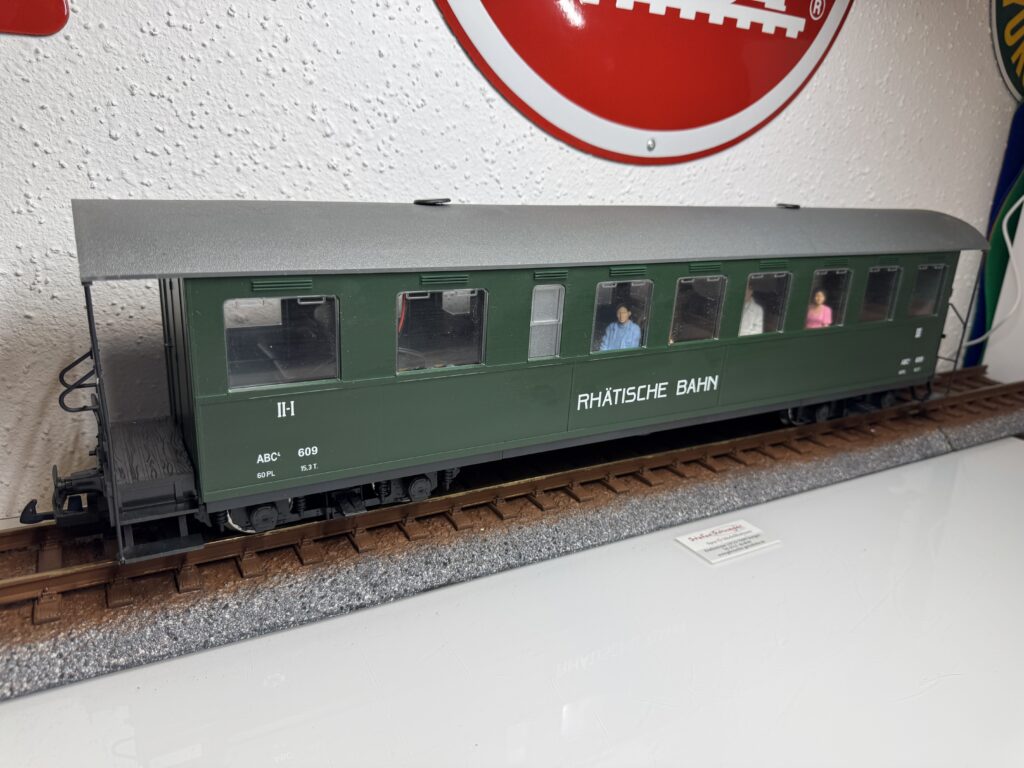 30250-GB-2 | Aussichtswagen der Rhätischen Bahn mit Figuren ,Metallachsen+LED Beleuchtung. Diese ist nicht getestet! | 3 | 2,Metall | Nein | 109,00€ | LGB | |