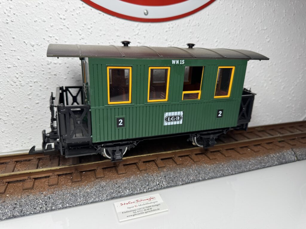 30503 | Abteilwagen grün/braun mit Innenbeleuchtung über 2xLGB-Kugellagerachsen | 2 | 2,Kugellager | Ja | 119,00€ | LGB | |