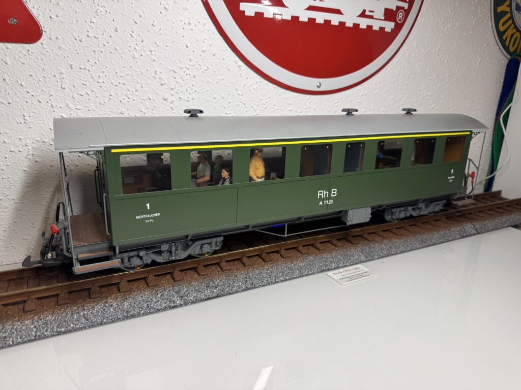 A-1123 | Personenwagen der Rhätischen Bahn,grün 1.Klasse A 1123 Magnus Höhne Metallhandarbeitsmodell | 2 | 4,Kugellager | Blechkiste | 499,00€ Abholung stark bevorzugt. Ab Januar lieferbar!! | Magnus-Höhne | |