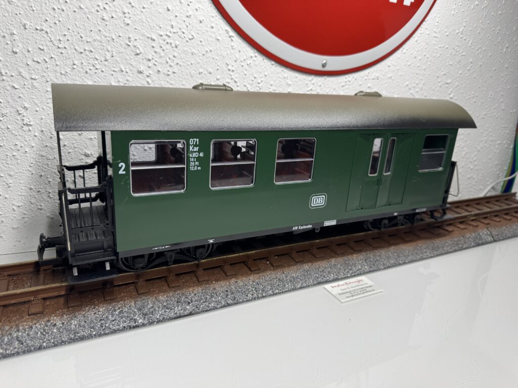 Gepäckwagen/1 | Sächsischer Gepäckwagen mit einer Bühne Aufwändiges Kleinstserienmodell auf Basis von Newquida Train Modellen. Wagenkasten aus gefrästen Kunststoffplatten. Aktuell bestellbareVarianten: Zittauer Schmalspurbahn Rügensche Bäderbahn Fichtelbergbahn DR grün Aktuell 1x vorrätig!! Rügensche Kleinbahn | 1 | 4 | Ja | 259,00€ Aktuell 1x DR Variante als Ausstellungstück für 199€ vorrätig! Reserviert Liefertermin für alle anderen Ausführungen unbekannt! | MBU | |