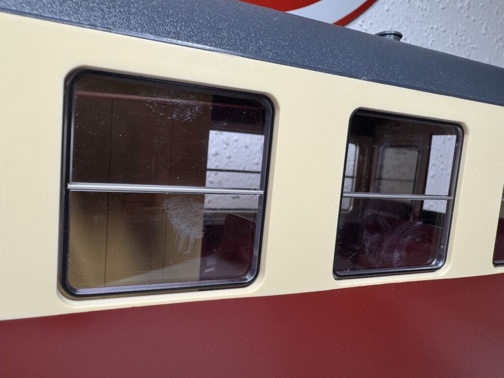 30660 | Panaoramawagen der Furka Oberalp Aus Gartenbahn mit Gebrauchsspuren Fensterband wurde mit Ersatzteil von 31660(silberner Streifen)erneuert. | 3-4 | 4,Kugellager/Metall | Ja,Lagerspuren | 185,00€ | LGB | |