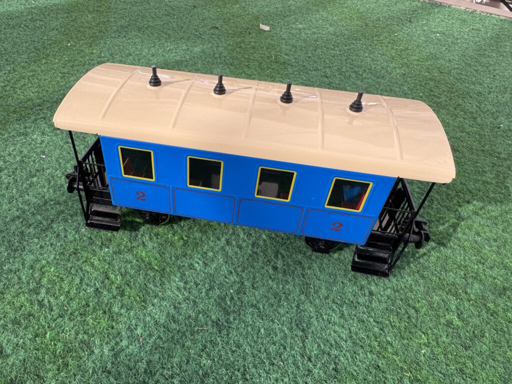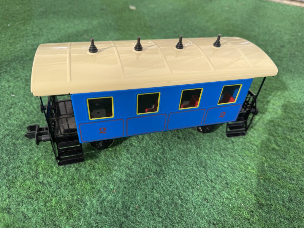 3011-GB4 | Personenwagen blau/beige Mit Metallachsen+Innenbeleuchtung+2xSchlußbeleuchtung 3xTrittbrett gebrochen | 3-4 | 2,Metall | Nein | 45,00€ | LGB |