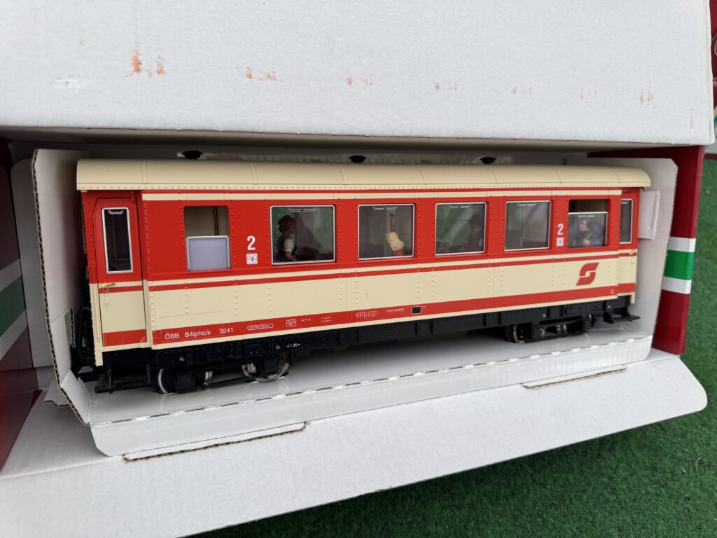 3064-ÖBB | Personenwagen der ÖBB rot/beige mit preiswerten Figuren | 2 | 4 | LGB-Ersatzverpackung | 119,00€ Reserviert | LGB |
