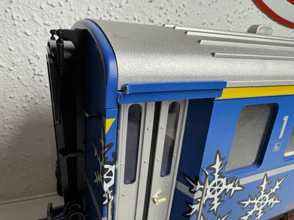 30120 | Personenwagen in blau/beiger Lackierung Nachgerüstet mit Digital schaltbarer Beleuchtung von Massoth. Umgebaut durch Fachwerkstatt Champex-Linden | 1-2 | 2,Kugellager | Ja | 89,00€ | LGB |