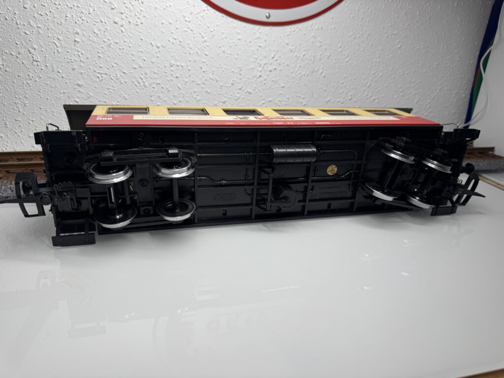 34730 | Personenwagen der HSB mit Werbung "Hasseröder Pils" Nachgerüstet mit Metallachsen und 1xKugellagerachse und Innenbeleuchtung | 1-2 | 4,Metall | Ja | 179,00€ | LGB |