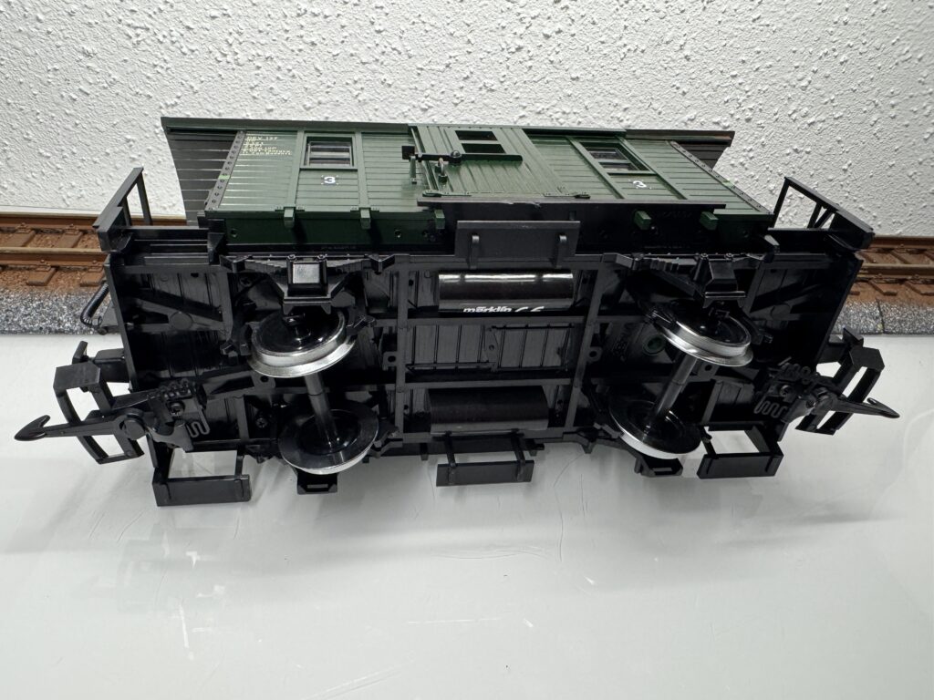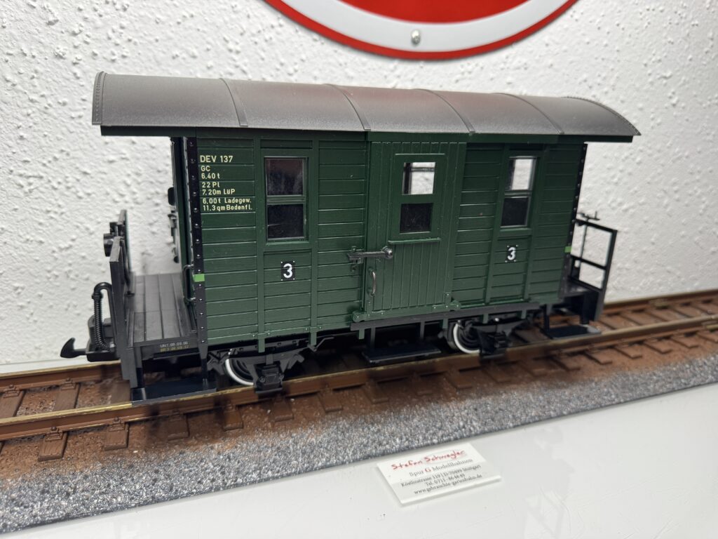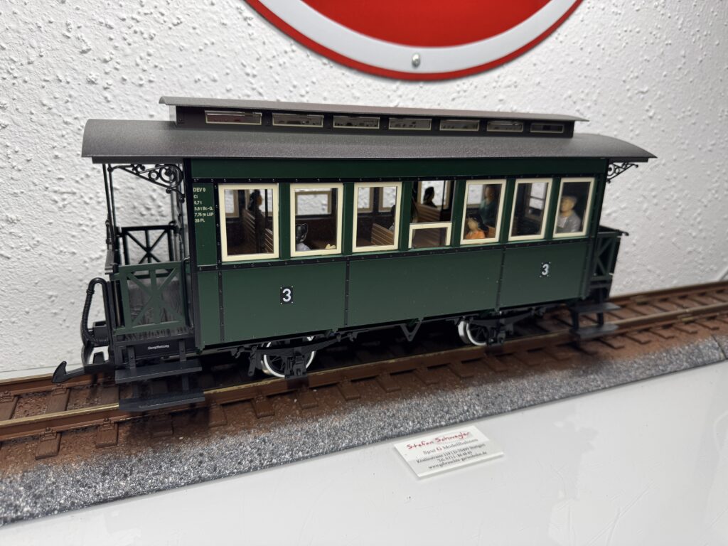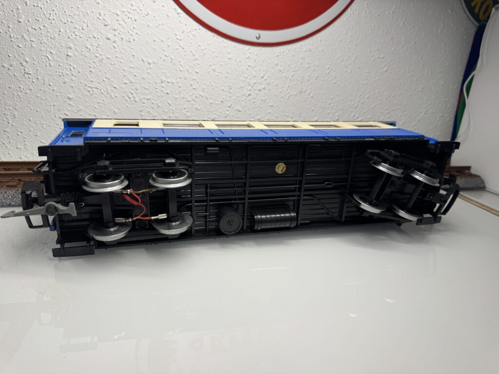 49390 | Wagenset DEV. Bestehend aus Personenwagen+Fakultativwagen und Schemelwagen,2er Set. Wagen wurden teilwiese mit Beleuchtung ausgestattet,siehe Bilder.Diese ist nicht geprüft. Beim Fakultativwagen sind 2 Trittbretter abgebrochen. | 3 | Nein | Nein | Ja | 295,00€ | LGB |