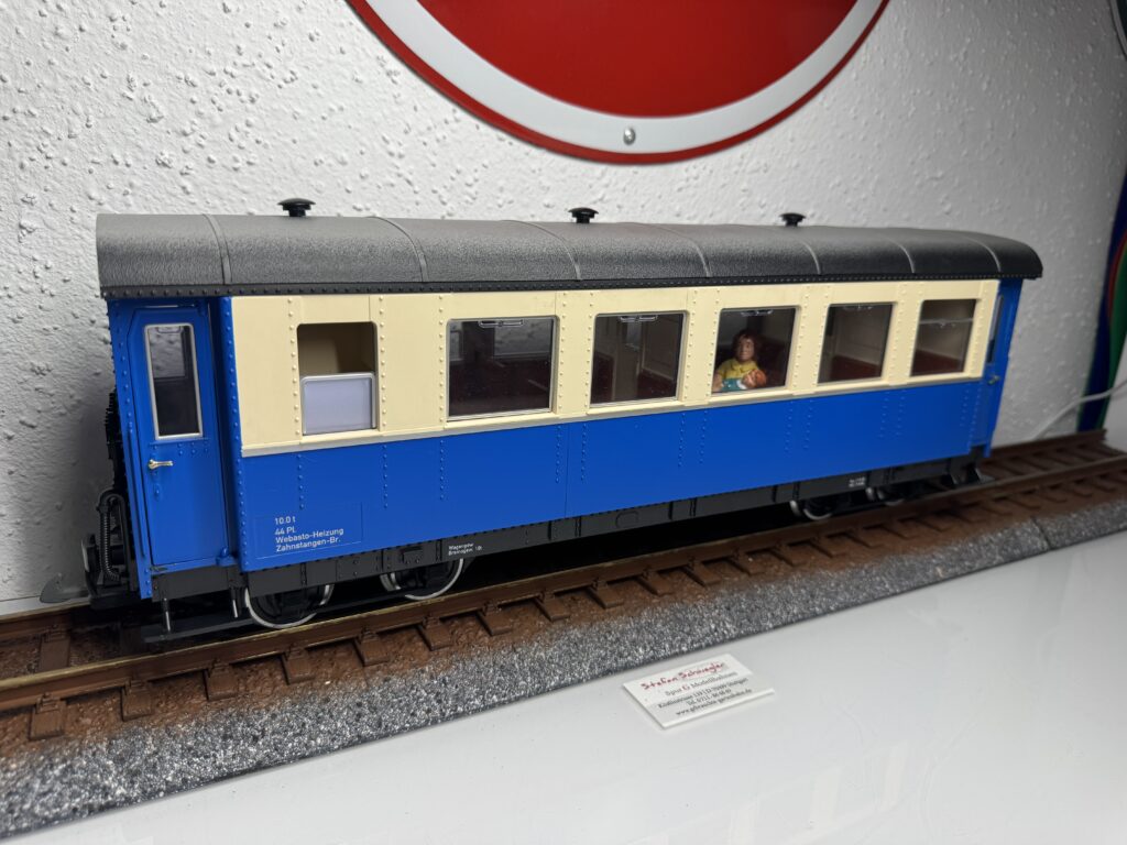 70246 | Zugspitzbahnset. Bestehend aus analoger E-Lok blau und 2 Personenwagen mit Innenbeleuchtung über Kugellagerachsen | 3 | Nein | Nein | Nein | 595,00€ Reserviert | LGB |